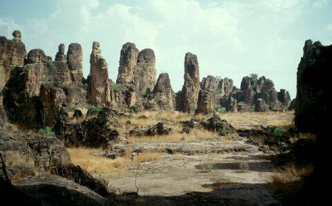 Wie bitte ? Ich glaube ich höre nicht richtig. Die wollen mich zum Geldausgeben zum Cousin lotsen. Ich frage nach den „Pics de Sindou“, interessanten Felsformationen, etwa 50km weiter. „Nein, das geht nicht“, behaupten der Chauffeur, der „guide“ und ein zufällig Dabeistehender unisono. „Warum nicht?“. Es ist ein heiliger Platz und gerade heute ist der einzige Tag im Jahr, wo geopfert wird, d.h., dass irgendwelche Alten, einigen Hühnern, Ziegen u.ä. dort die Kehlen durchschneiden. Mein Einwand, ob man trotzdem in die Nähe kommt - ich kann mir überhaupt nicht vorstellen, dass man für Opfer einen Gebirgszug sperrt - wird beiseite gewischt. „Nein es geht nicht.“ Ich stelle mich doof - eine gute Masche - ich verstehe die Begründung nicht und halte das für eine Ausrede, rechtzeitig wieder zu Hause bei Muttern zu sein. Ich frage also immer wieder, ob es nicht irgendwie doch geht. Leicht genervt geben die anderen nach. Guattara meint sogar großzügig, er wird beim Dorfchef ein gutes Wort für mich einlegen und für mich eine Ausnahme erbitten. Dann reden sie nicht mehr mit mir. Auch gut, schließlich zahle ich doch den ganzen Spaß. Dafür kann ich aber auch entscheiden, wie lange der Tag dauert und wo es hingeht. Wie war das doch gleich: „Mit Kunden diskutiert man nicht ...?