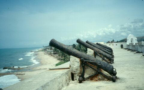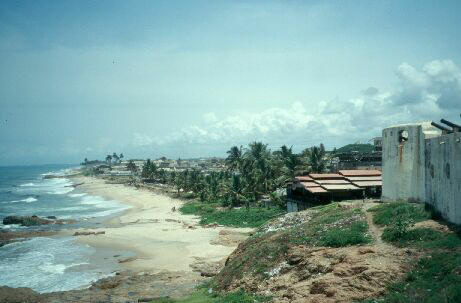 Im Cyber Café surfe ich noch eine Runde, ehe ich Cape Coast in Richtung Accra verlasse. Die Straße führt zuerst relativ nahe am Meer entlang. In Kromantse sehe ich aus dem Auto das Fort Amsterdam - zum Anhalten und besichtigen finde ich es aber nicht interessant genug.