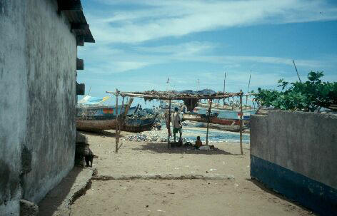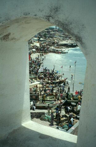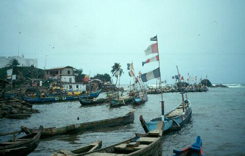 Die Besichtigung des „castle“ ist sehr spannend. Es sind zwar auch hier nur leere Räume, aber die Aussicht auf Elmina, seinen Hafen und das gegenüberliegende Fort St.Jago ist einfach klasse. Im Burg-Restaurant esse ich noch etwas, erkunde Elmina, kaufe ein paar Andenken und verlasse im kochend heißen Auto den Ort.