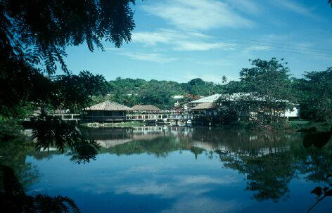 Kurz vor Elmina biege ich nach Dutch-Komenda ab. Hier gibt es das ehemalige Fort Vredenburg und ein namenloses britisches Pendant auf beiden Seiten eines kleines Flusses. Als ich durch das Dorf rolle - ein BMW fällt hier richtig auf - suche ich vergeblich eine Ruine. Ein Mann spricht mich an und möchte mich führen. Das ist wohl besser. So kann ich mich besser im Dorf bewegen und Fotos machen. Das britische Fort ist schnell gefunden. Um es zu erreichen, hätte ich entweder mit einem Boot den Fluss überqueren müssen oder mit dem Auto zurück zur Hauptstrasse fahren und einige Kilometer weiter einen anderen Zugang nach Komenda finden müssen. Es gibt allerdings mitten im Dorf den Korpus einer Betonbrücke, die den Fluss bereits überspannt. Leider hat sie keinen Belag und keine Auffahrten. Es ist eine Ruine, die der letzte Präsident vor dem Rawlings-Putsch noch initiiert hat. Seitdem sind viele Jahre vergangen.