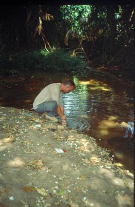 Es gibt hier auch heilige Fische, die man nicht essen darf. Dazu gehen wir zum „Fluss“ hinunter, einer stinkenden Kloake, voller Müll und Fäkalien. Man muss aufpassen, wo man hintritt - auch Afrikaner haben Durchfall.