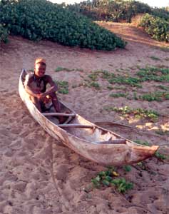 seinem Einbaum die Brandung überwindet. Respekt.