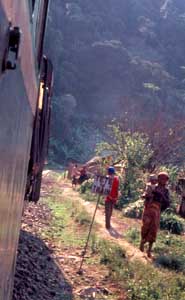 macht der Zug eine Vollbremsung. Jemand hat Steine auf die Schienen gelegt.